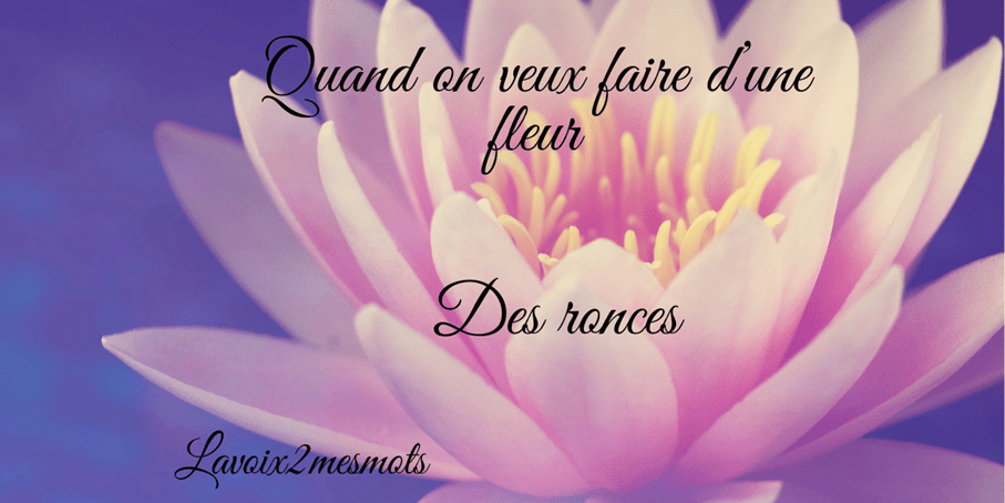 Quand on veut faire d’une fleur des ronces , on met tout un Système en place pour la nuire , la déstabiliser , pas qu’on lui en veuille personnellement non un système existant que l’on généralise, qui vise à discréditer une personne, je suis cette fleur et surement une autre le sera ou peut l’a été aussi . un homme je pense peut en être également la cible . l’air ambiant me l’ayant démontré . Un système généralisé qui sert à déstabiliser comme si a un moment de la vie d’une personne quelqu’un avait décidé qu’elle avait été une fois de trop victime.