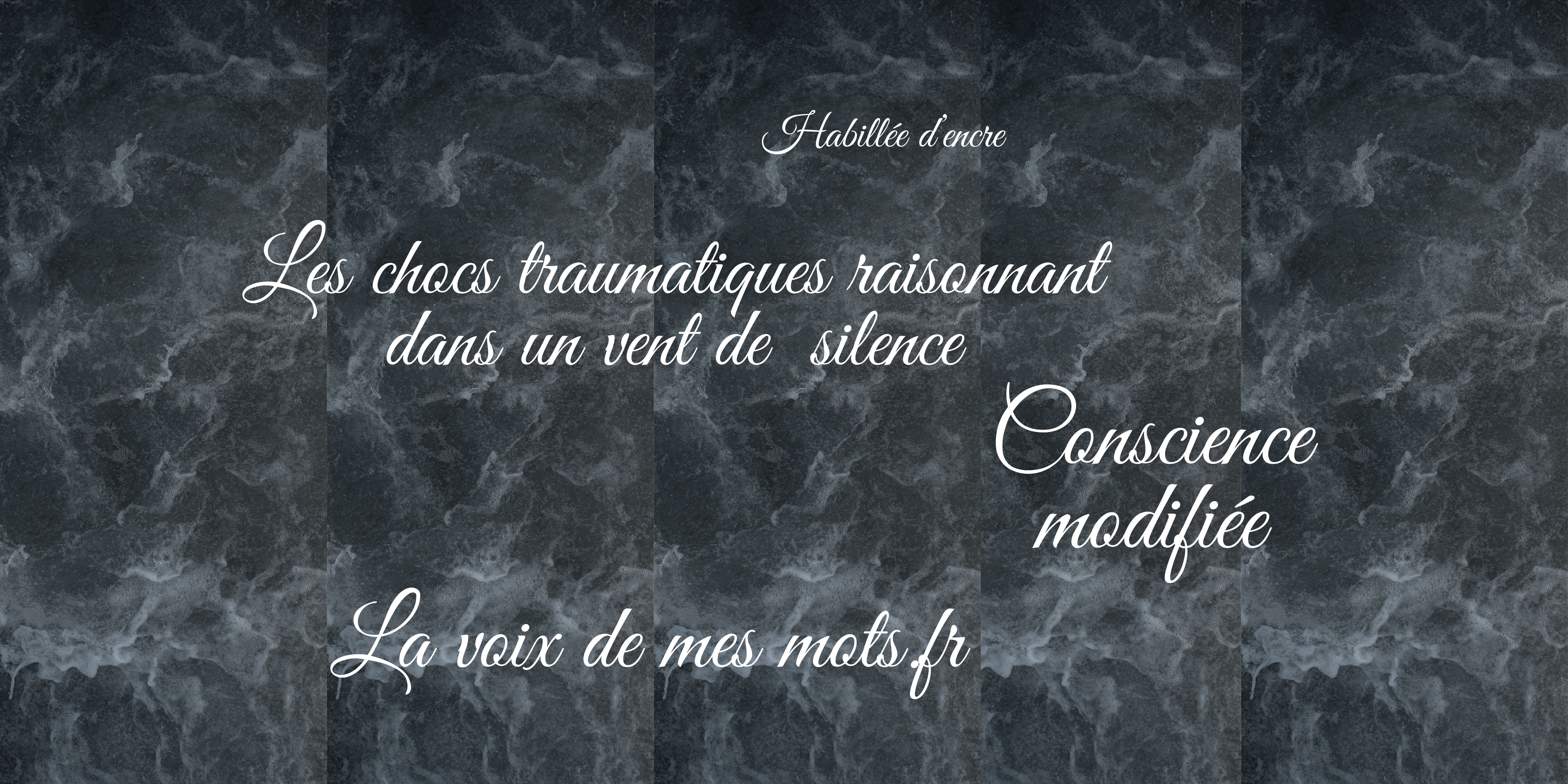 La conscience modifiée, quelque chose qui s’écrit en silence, des chocs traumatiques résonnant dans un vent de silence.